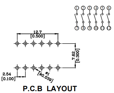 6P平撥開關16.78*9.9*6.7mm(2.54)